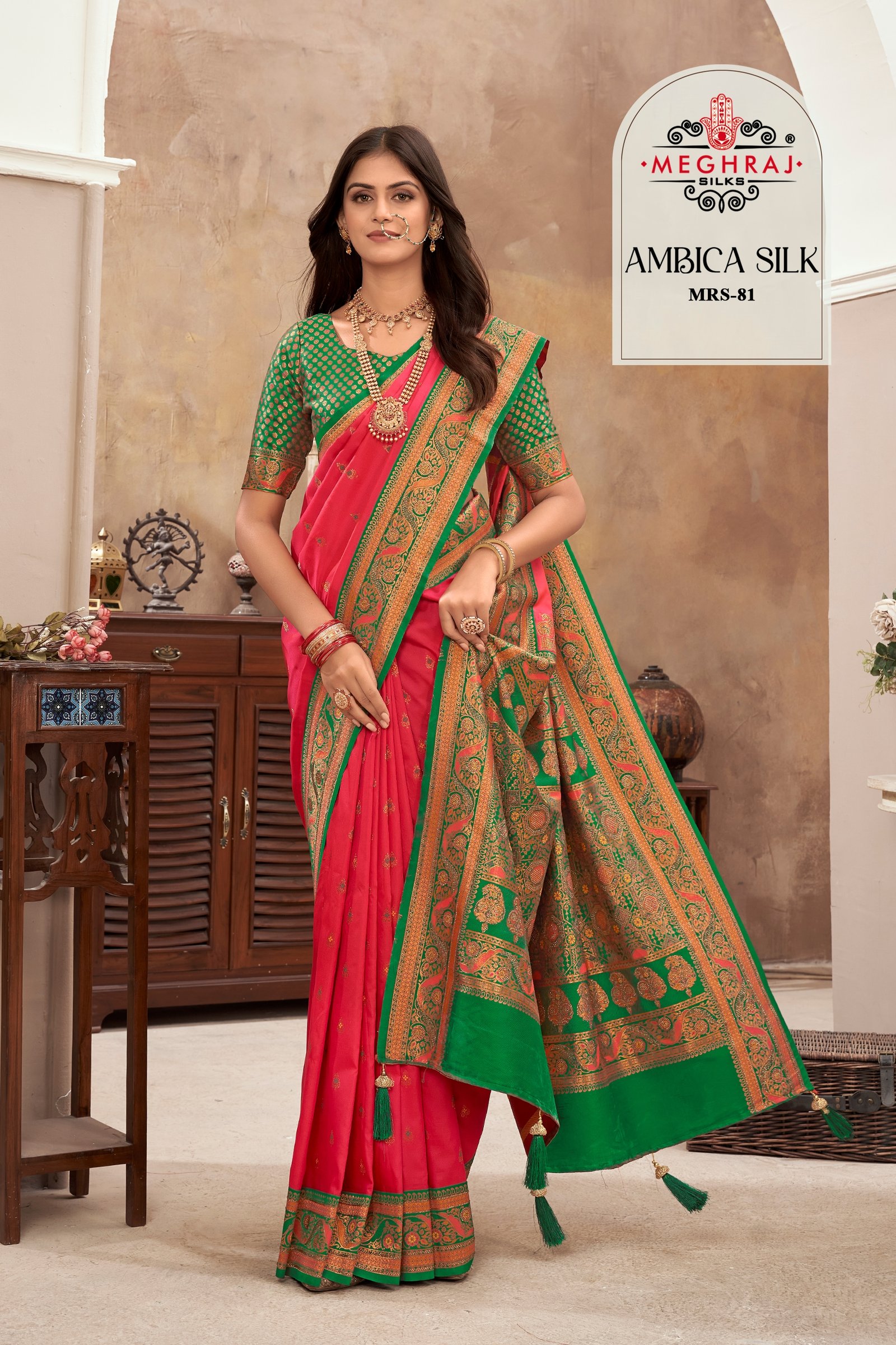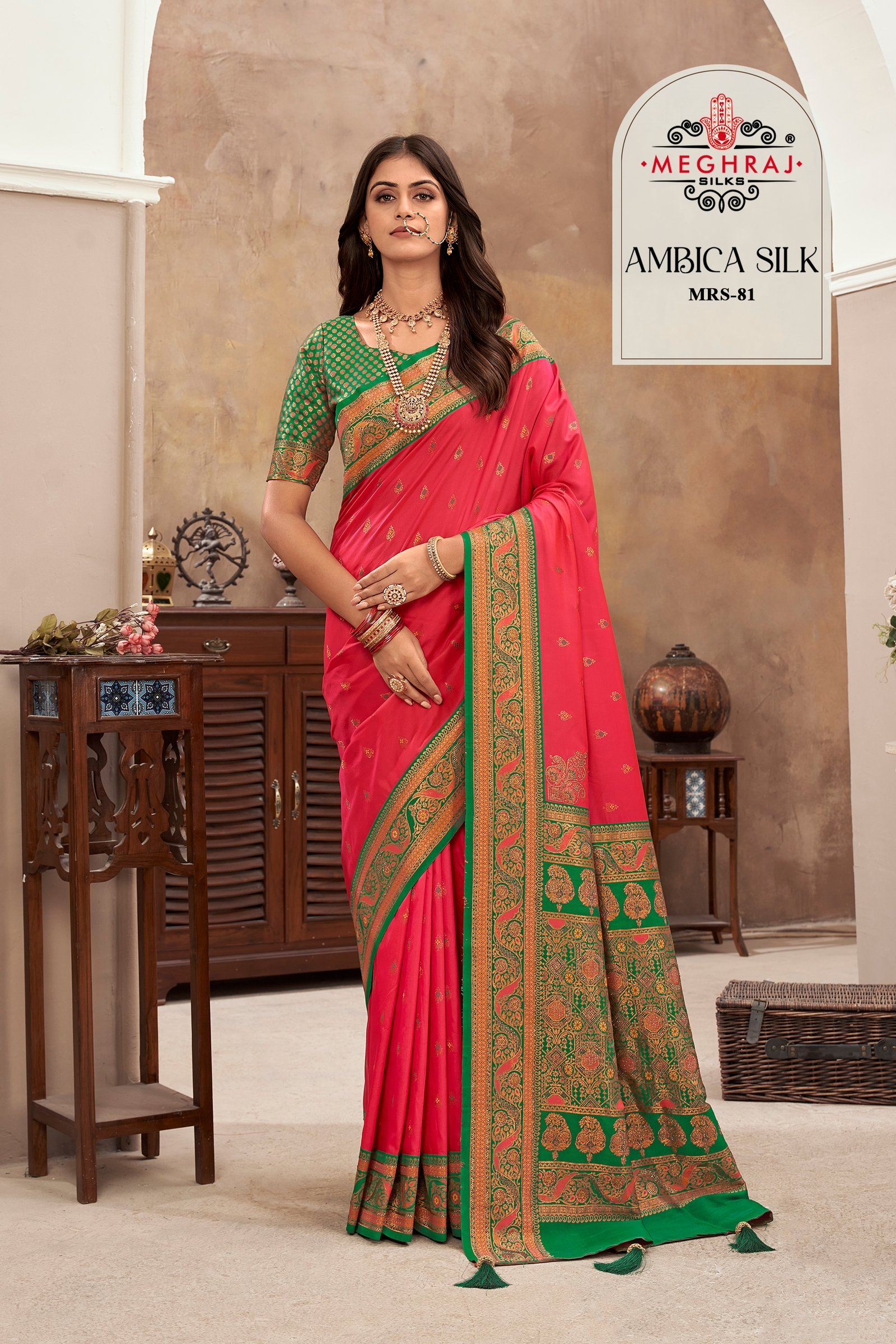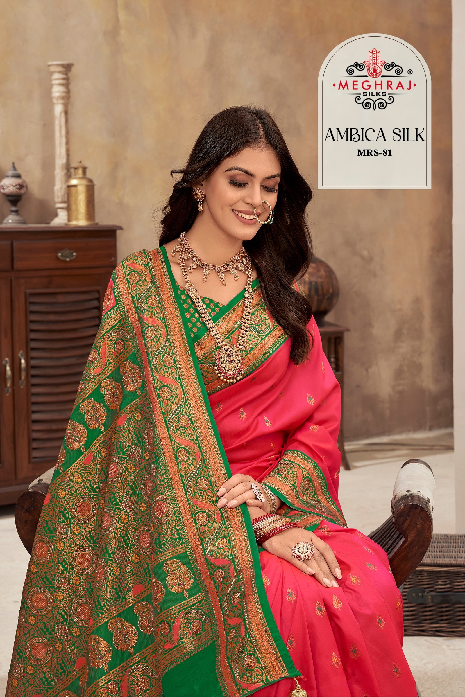 Experience the perfect blend of tradition and trend with Ambica Silk Sarees. These sarees are designed to highlight your elegance with their intricate craftsmanship and regal appeal, ideal for festivals, receptions, and cultural gatherings.