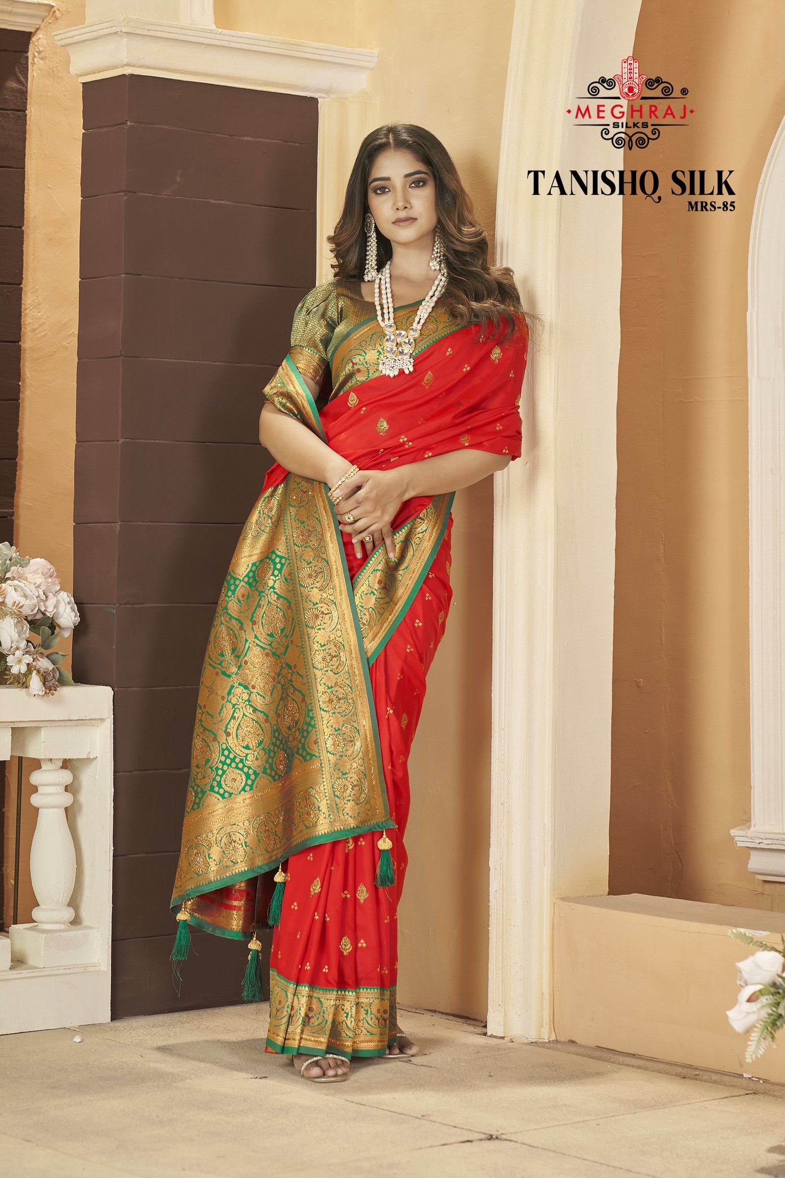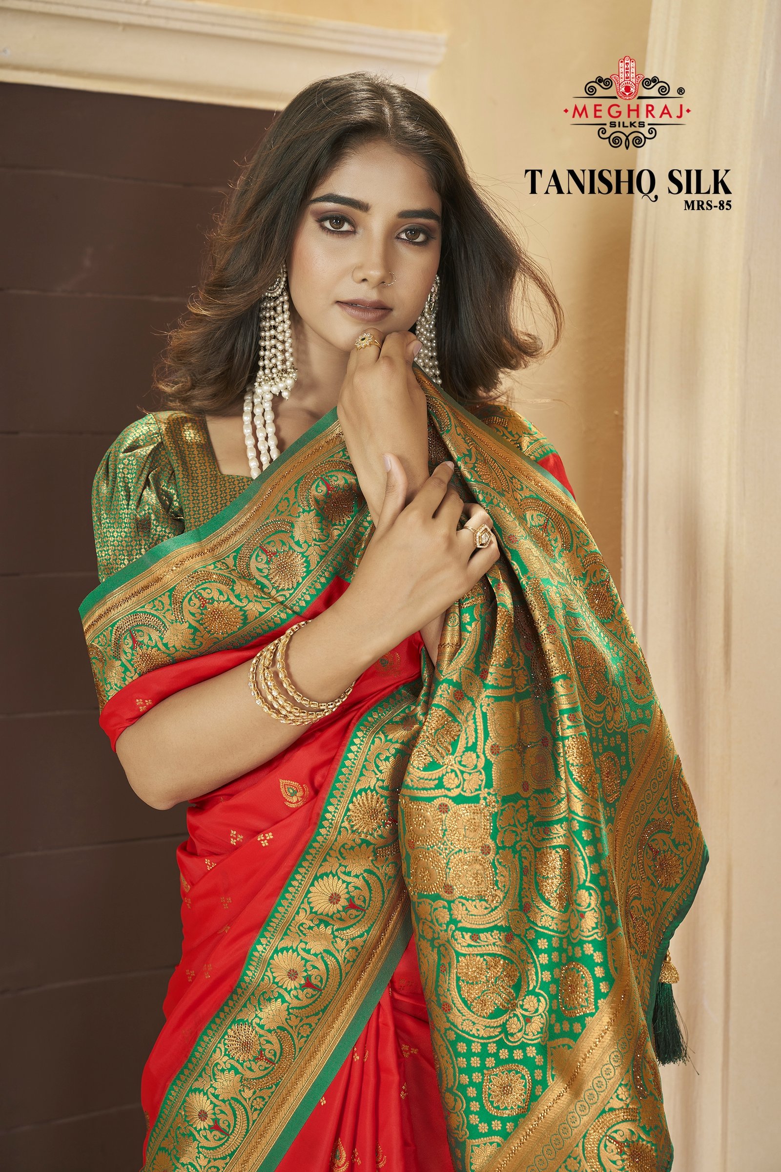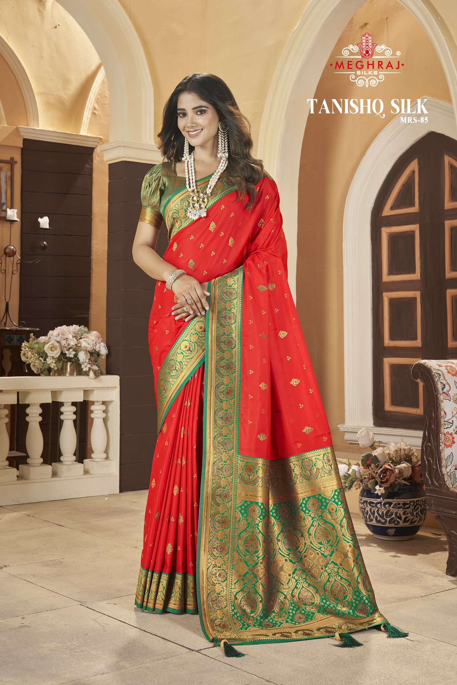 The Tanishq Silk MRS 85 Saree is a harmonious blend of elegance and durability. Its lustrous silk and detailed designs make it a versatile choice that can transition effortlessly from formal events to grand festivities, providing you with style that lasts.