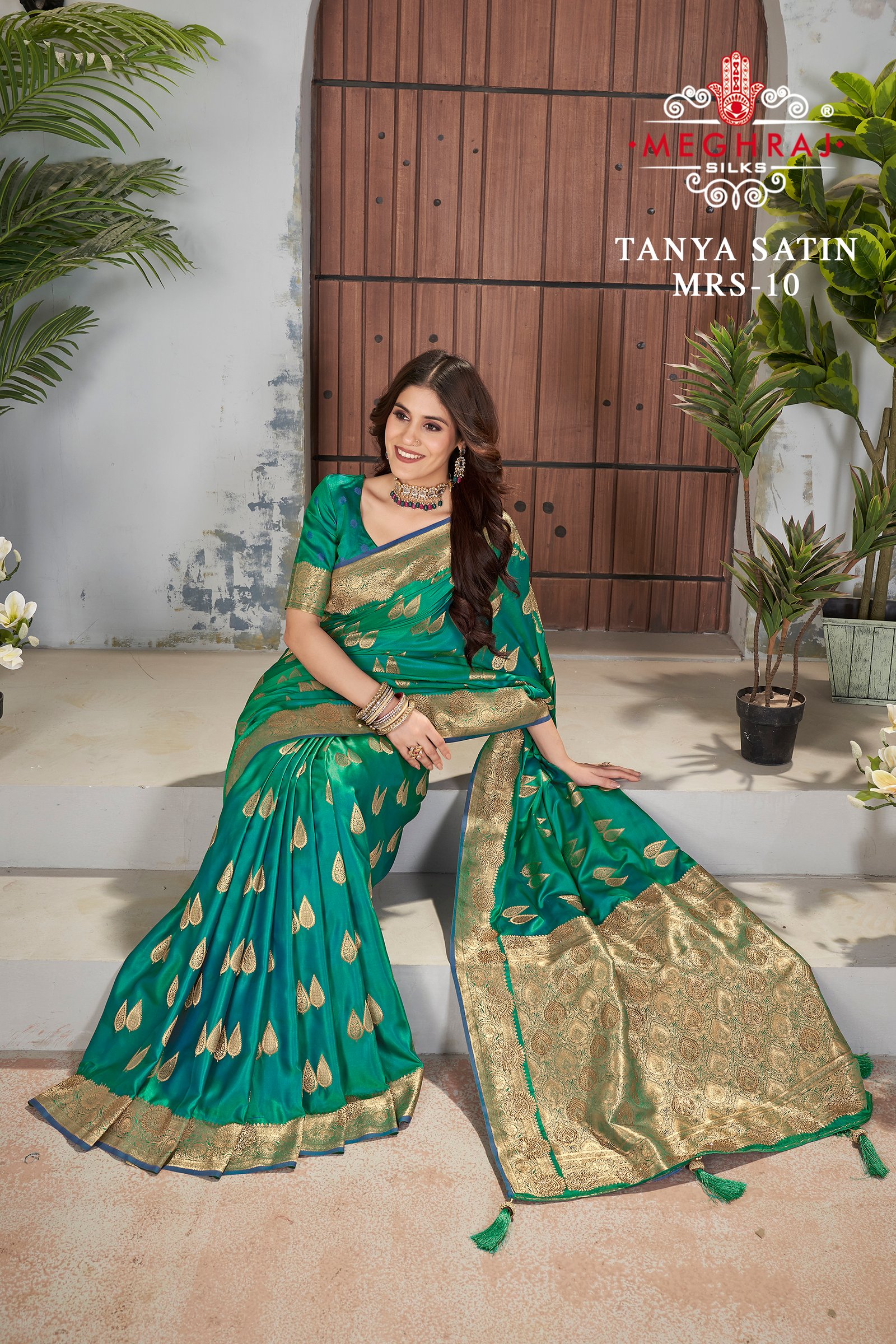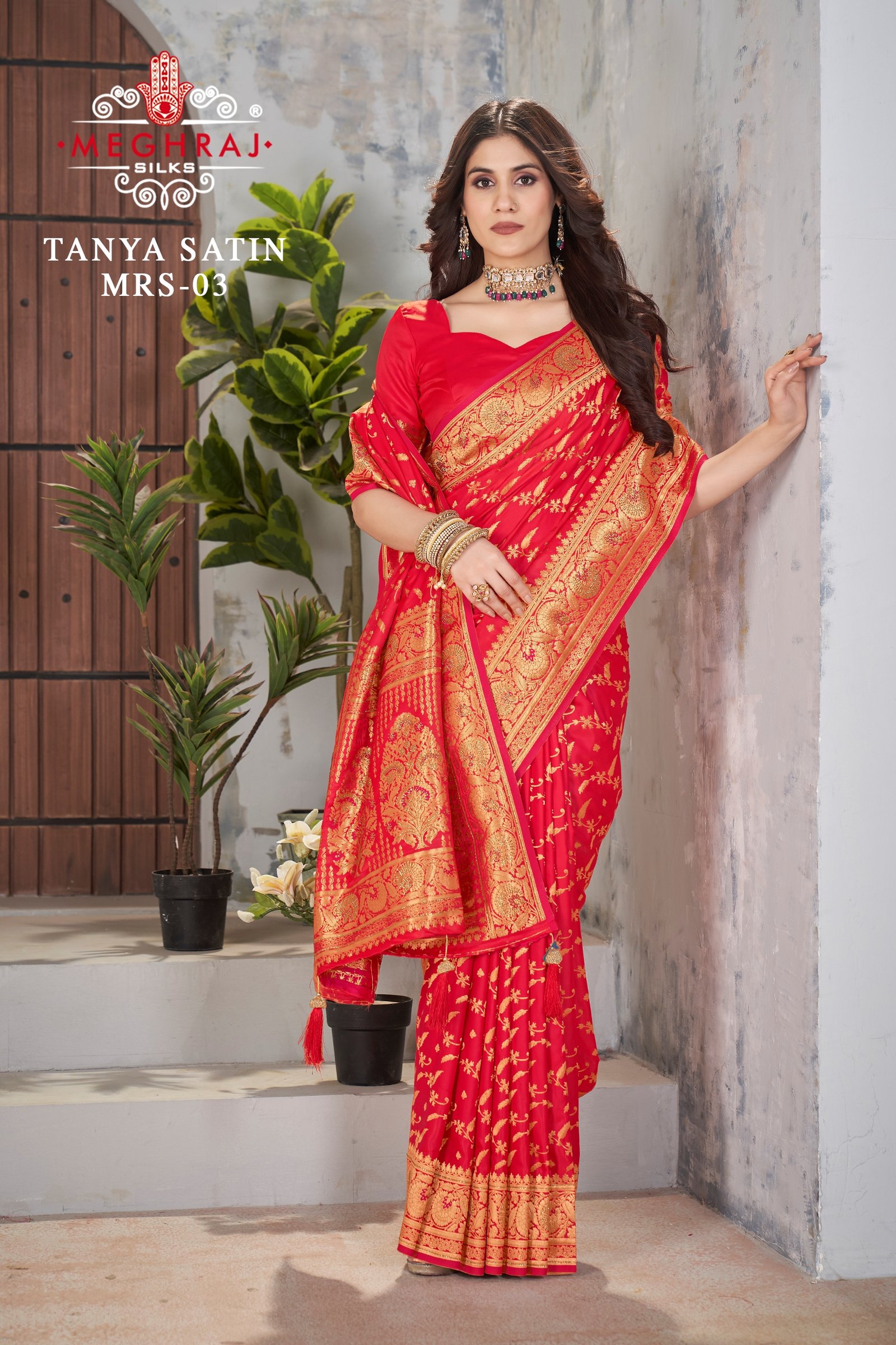 Tanya Satin Sarees promise to elevate your wardrobe with their sleek finish and sophisticated appeal. Whether paired with traditional jewelry or modern accessories, they bring a touch of glamour to any occasion.