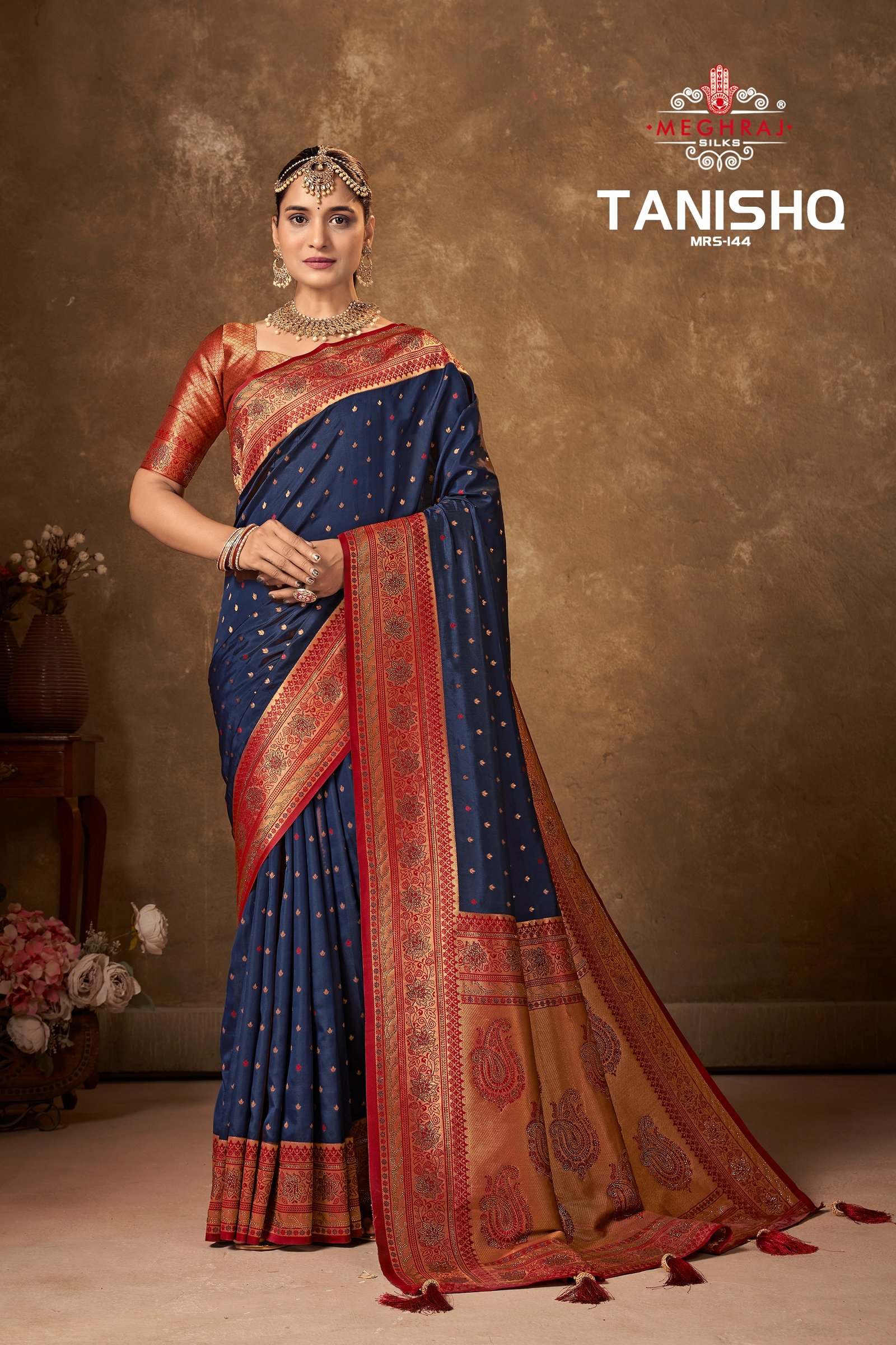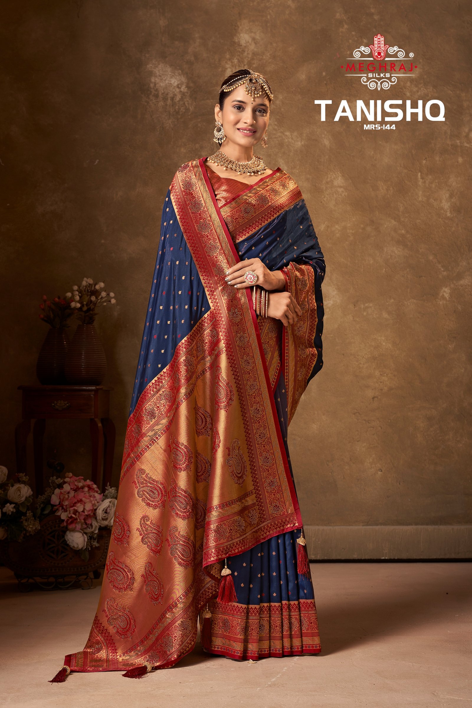The Tanishq Silk MRS 144 Saree is a harmonious blend of elegance and durability. Its lustrous silk and detailed designs make it a versatile choice that can transition effortlessly from formal events to grand festivities, providing you with style that lasts.